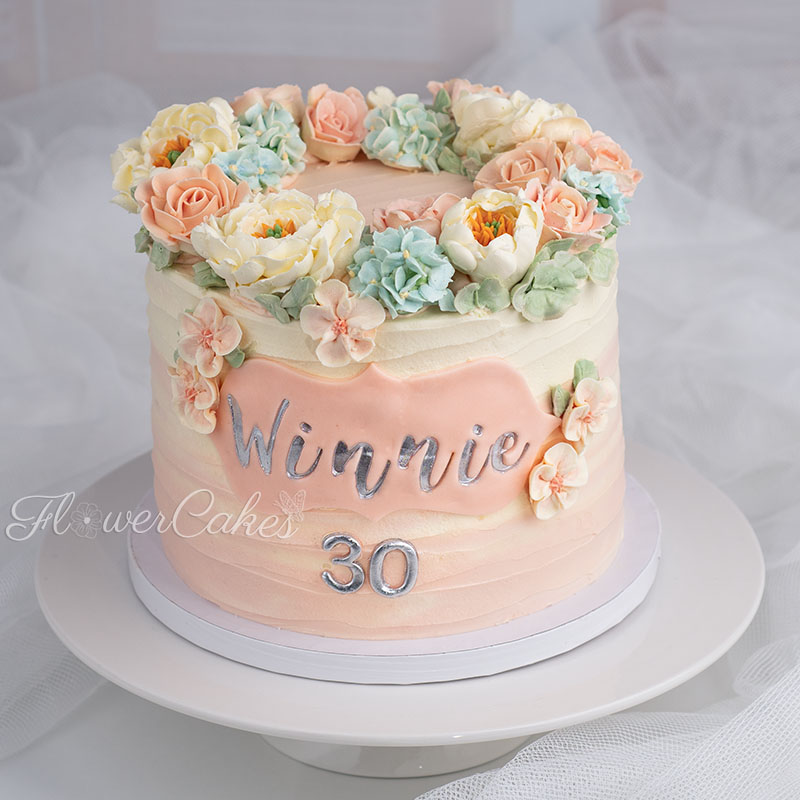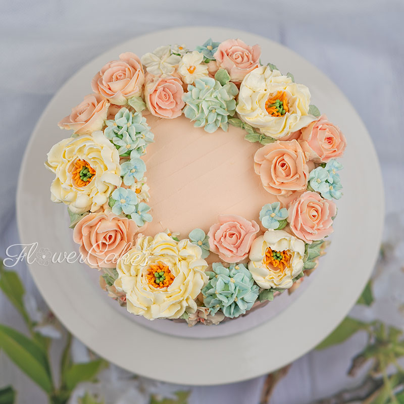 En tårta med fräscha smaker, citron & blåbär som smälter i munnen. Dekorerad med blommor av smörkräm.